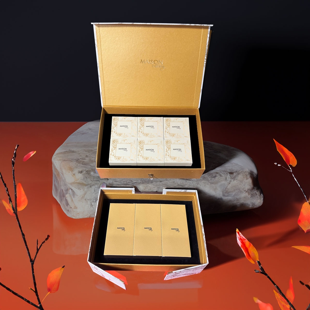 Hộp bánh Trung Thu "Luxury" của Maison Luxury là biểu tượng của sự sang trọng và tinh tế, thể hiện đẳng cấp và sự chăm chút trong từng chi tiết. Được thiết kế với hai tầng độc đáo và sử dụng giấy mỹ thuật nhập khẩu cao cấp, màu sắc hài hòa cùng hoa văn tinh xảo, mỗi hộp bánh là một tác phẩm nghệ thuật đặc biệt. Hộp bánh "Luxury" là món quà hoàn hảo cho dịp lễ Trung Thu, mang lại sự trọn vẹn và ý nghĩa.