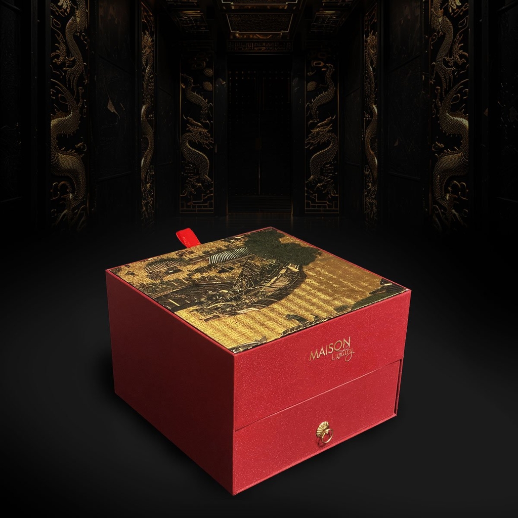 Hộp bánh Trung Thu "Đoàn Viên" của Maison Luxury là biểu tượng của sự sum vầy và ấm cúng, mang lại trải nghiệm tuyệt vời cho người thưởng thức. Với thiết kế hai tầng sang trọng, sử dụng giấy mỹ thuật nhập khẩu cao cấp và hoa văn 3D tinh xảo lấy cảm hứng từ làng quê xưa gợi nhớ về ký ức tuổi thơ, mang lại cảm giác gần gũi và thân thương, hộp bánh "Đoàn Viên" là món quà ý nghĩa cho dịp lễ Trung Thu, thể hiện sự quan tâm và tình cảm của người tặng.