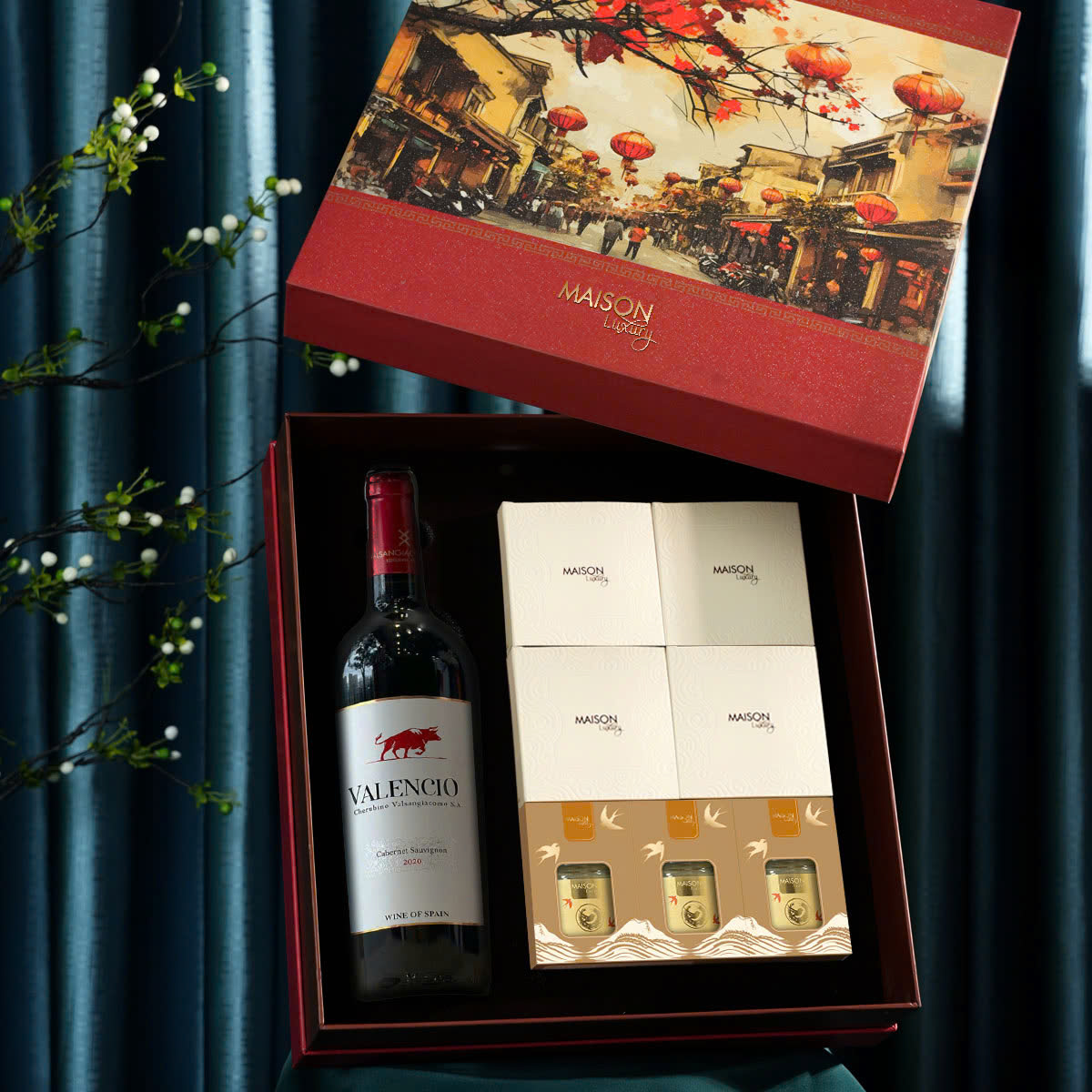 Hộp quà Tết "Mùa Xuân" là biểu tượng của sự sang trọng và ý nghĩa trong dịp Tết Nguyên Đán. Được thiết kế tinh tế với tông màu đỏ rực rỡ, hộp quà này gợi lên hình ảnh phố cổ Hà Nội ngày Tết, nơi đèn lồng đỏ và hoa mai vàng hòa quyện tạo nên không khí ấm áp và hoài niệm.