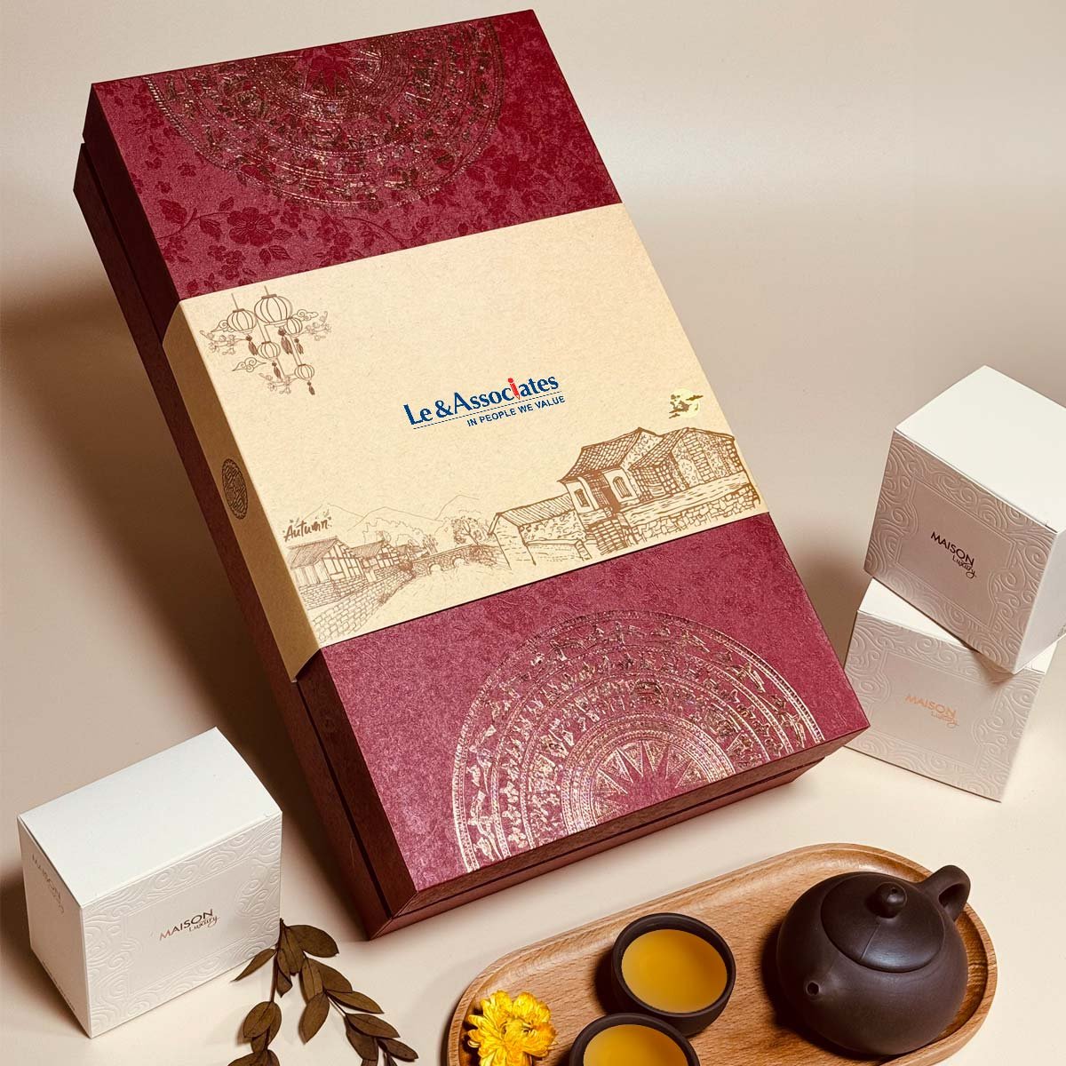 Thiết kế độc đáo: Maison Luxury cung cấp dịch vụ thiết kế riêng biệt, giúp doanh nghiệp tạo ra những mẫu hộp bánh Trung Thu độc đáo, phản ánh đúng tinh thần và giá trị thương hiệu.