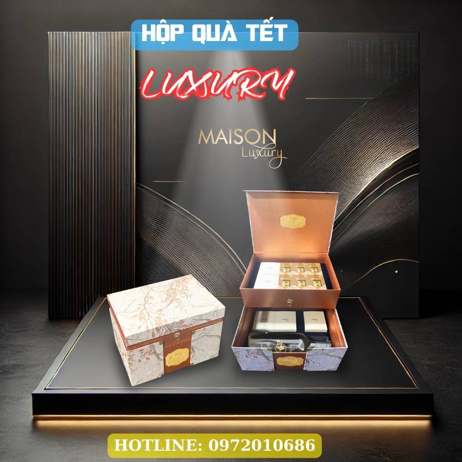 - Hộp Quà Tết Luxury 2025 của Maison Luxury – bộ quà sang trọng với trà cao cấp, rượu vang, và các món quà đẳng cấp khác. Xem chi tiết sản phẩm tại đây.